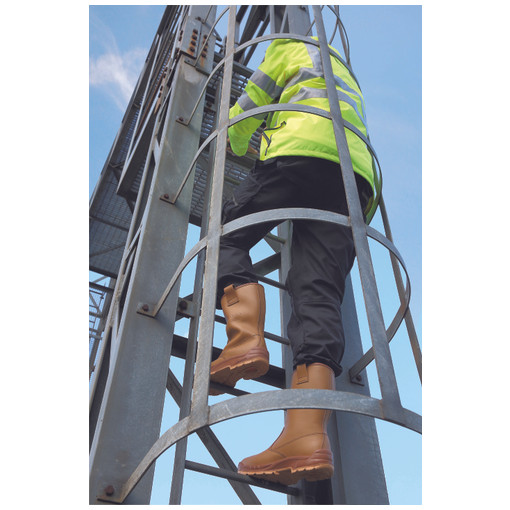 Botte coloris naturel. Tige en cuir pleine fleur, hydrofuge et oléofuge Imperméable. Doublure d'avant pied en textile non tissé résistant à l'abrasion et aux acides de la transpiration. Contrefort pour un bon maintien de l'emboîtage du talon. Première de propreté couvrant la totalité de la surface du pied, amovible, antistatique, traitée anti-bactérienne, anatomique et avec absorbeur de chocs talonniers. Intercalaire anti-perforation en acier inoxydable. Embout acier perforé (breveté). Semell [...]