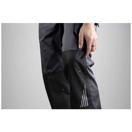 Composition : Sergé 60% coton 38% polyester 2% élasthanne - 280 g/m2 Oxford 300D imperméable - 100% polyester - 175 g/m2 Bouton semi caché Ceinture élastiquée côtés 5 passants Braguette zip injecté Large passant milieu dos Poches italiennes, entrée de poche renforcée en Oxford Poche à soufflet, plaquée cuisse gauche, avec rabat fermé par bande auto-agrippante Système porte outils Poches genouillères 1 position en Oxford 2 poche dos à soufflet (dont une avec rabat), fermées par bandes aut [...]