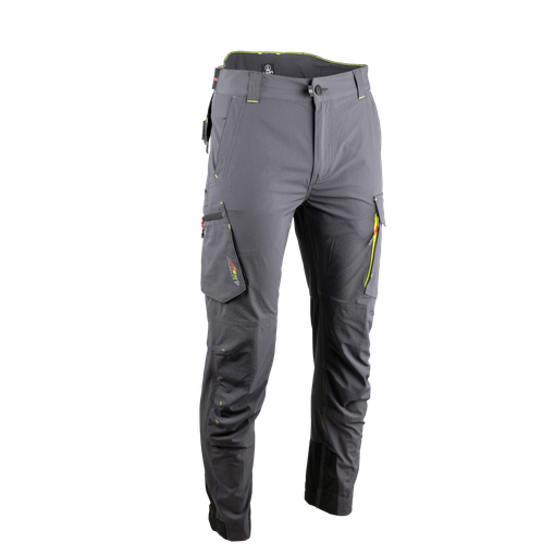 Bouton plastique 4 trous souple Ø 20mm Braguette zip injecté plastique Ceinture composée de 5 passants + 1 passant dos large avec réhausse lombaire, bande élastiquée anti-glisse et resserrable par pattes extensibles dos Poches italiennes Poche cuisse gauche fermée par rabat et scratch Surpoche fermée par zip Poche cuisse droite à soufflet, fermée par zip avec ouverture poche mètre Poche dos gauche à soufflet, avec rabat fermé par scratch Support porte marteau semi volant en Oxford 300D Renfor [...]