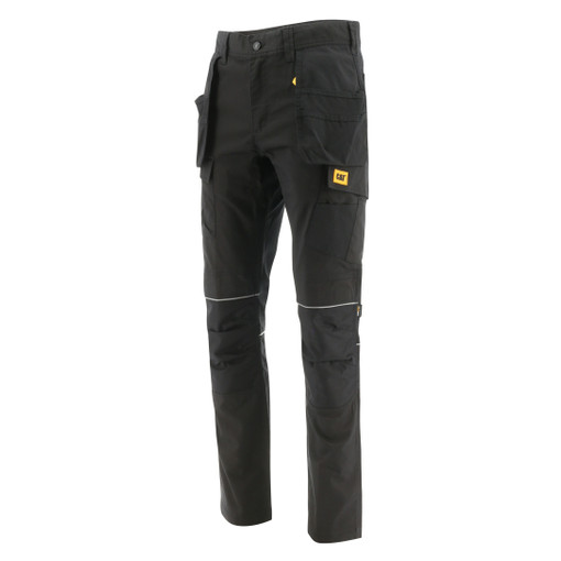 Pantalon de travail avec une coupe slim Poches genouillères avec renforts en Cordura® 2 Poches holster 1 poche cargo latérale avec fermeture sécurisée et poches superposées Les poches arrière sont coupées du vêtement pour plus de confort Boucle de charpentier sur la hanche droite 1 poche téléphone sur la cuisse droite avec fermeture à crochet Logo CAT en silicone sur la cuisse gauche 65 % coton / 33 % polyester / 2 % toile élasthanne avec revêtement DWR, 250 g/m². Poches genouillères : Oxf [...]