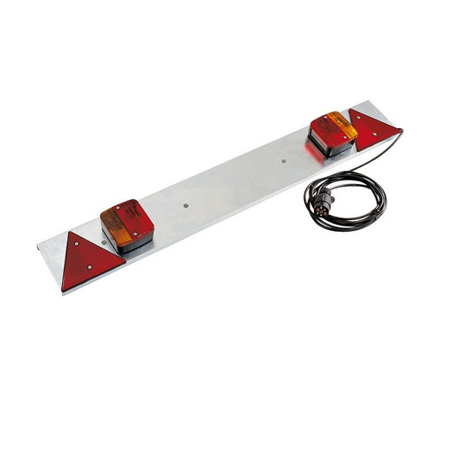 Feux 3 fonctions (stop, clignotant, éclaireur de plaque) 2 triangles réfléchissants câble alimentation 5 conducteurs, équipé d'une fiche plastique 7 broches.