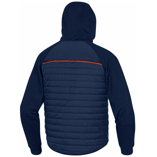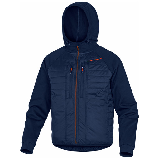 Veste bi-matière, fermeture par zip anti-froid, capuche fixe, poignets bord-côte, 5 poches