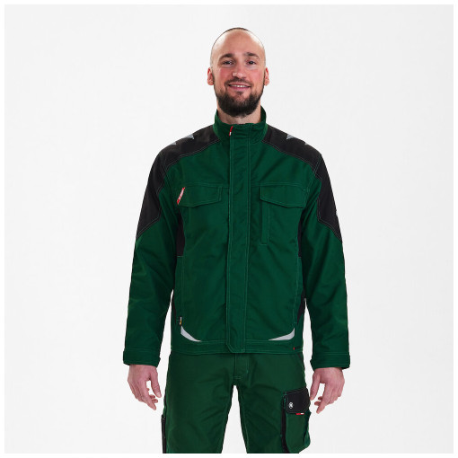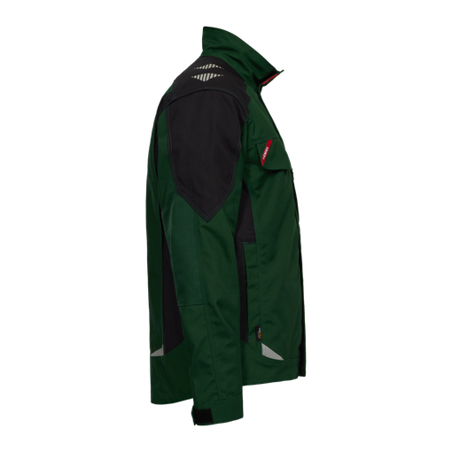 Blouson de travail fonctionnel comportant de nombreux détails. Dos allongé avec soufflet dans le dos pour une meilleure liberté de mouvement. Pièce au-dessus de la fermeture à glissière sur le devant. Coudes renforcés. Deux grandes poches repose-mains. Deux poches poitrine à rabat ; la droite avec bride et anneau en D pour, par exemple, fixer un badge et la gauche avec une poche zippée supplémentaire pour le portable, entre autres. Deux grandes poches intérieures avec fermeture velcro. P [...]