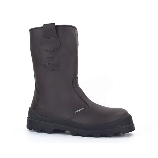 Botte fourrée de laine isothermique en cuir fleur hydrofuge, hauteur à mi-mollet. Haut de col fini et gansé, lanière cuir pour faciliter l'enfilage. Première de propreté antistatique lavable et traitée anti-bactéries. Embout synthétique Unicomp 200 joules non métallique extra large en polymère technique, anticorrosion, aucune conduction thermique, amagnétique. Lame anti-perforation en acier inoxydable vernis polyuréthane sans utilisation de substance SVHC dans le strict respect de la régleme [...]