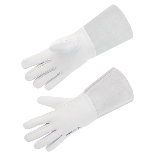 Montage ville: pouce monté et fourchettes = bande de cuir cousue entre les doigts.