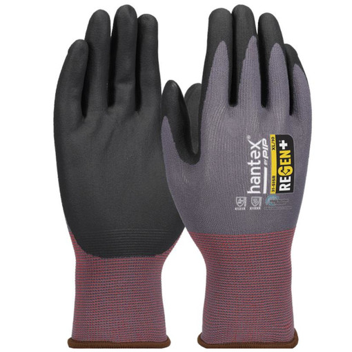 Gant tricoté sans coutures avec support en polyester recyclé/spandex de jauge 15, enduction en mousse de nitrile sur la paume et les doigts.