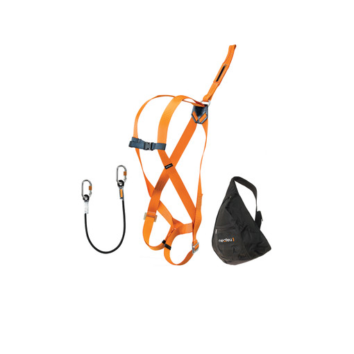 ce kit est composé d'un harnais antichute 1 point dorsal, d'une longe simple de retenue de 1m