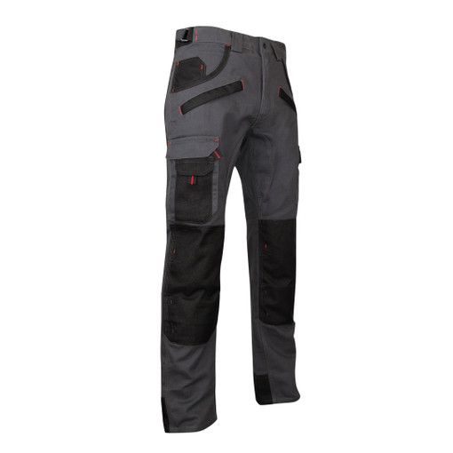 Ceinture resserrable par pattes élastiquées sur les côtés. 2 poches western avec 1 poche ticket. 2 poches zippées. Poches genouillères double position en Oxford résistant 900D. Côté gauche au porté : passant porte marteau, 1 poche cuisse à soufflet + poche à outils. Côté droit au porté : 1 poche cuisse à soufflet + 1 poche téléphone. Dos : 2 poches semi-flottantes fermées par bandes auto-agrippantes, dont une avec rabat. 1 poche mètre et 1 poche à stylo. Ceinture rehaussée dos, large [...]