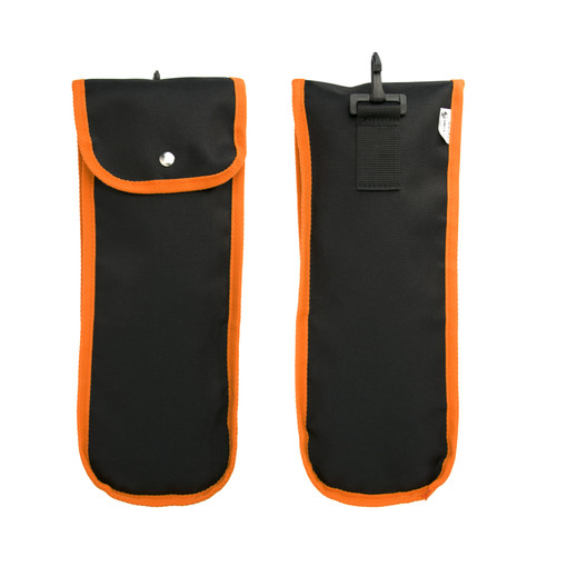 Un passant au dos pour fixation au harnais ou ceinture, intégrant un mousqueton plastique.