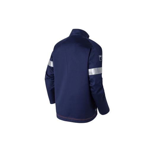 Col montant, fermeture glissières sous patte pressionnée, 2 passants poitrine pour détecteurs gaz, 1 poche poitrine plaquée sous rabat pressionné, 1 poche asymétrique sous rabat pressionné avec détail surpiqure fantaisie et 2 poches côtés sous rabat avec points d'arrêts contrastés. Manches raglan et poignets réglables par pressions. Bandes rétroréfléchissantes largueur 50mm répondant à la norme 17353. 1 marquage transfert FR pictogrammes sur manche gauche, 1 marquage transfert FR zone AT [...]