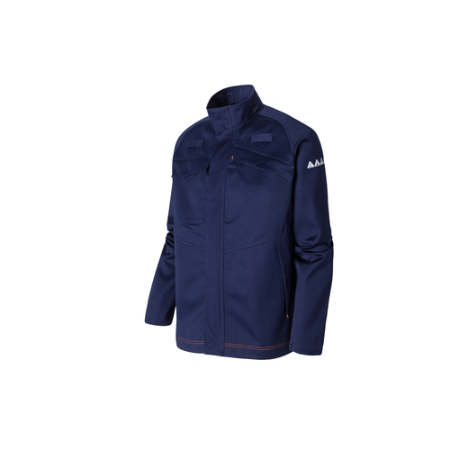 Col montant, fermeture glissières sous patte pressionnée, 2 passants poitrine pour détecteurs gaz, 1 poche poitrine plaquée sous rabat pressionné, 1 poche asymétrique sous rabat pressionné avec détail surpiqure fantaisie et 2 poches côtés sous rabat avec points d'arrêts contrastés. Manches raglan et poignets réglables par pressions. 1 marquage transfert FR pictogrammes sur manche gauche, 1 marquage transfert FR zone ATEX sur manche droite. La veste doit être portée impérativement avec le p [...]